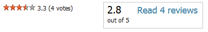 You can show rating for given resource and site by adding tags to your templates. For example, $(resource_rating) outputs rating of your resource as a number (2.5, 2.7), counted as an average of ratings left by customers. $(resource_rating_votes) prints the number of reviews submitted and $(resource_rating_stars) shows the rating as stars. Additionally, you can use $(resource_rating_showcase) to show a clickable box with the resource rating summary. Once clicked, all reviews and comments left by customers will be shown in a pop-up. $(resource_rating_showcase_simple) does the same but doesn't show the stars. $(resource_rating_inline) prints customer reviews directly on the page.