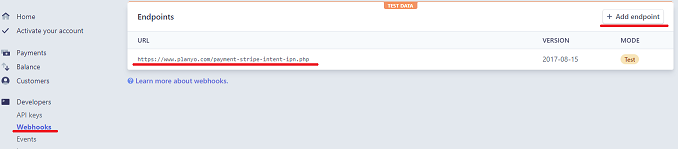 You need to set up a Stripe webhook so we can receive transaction data and refunds. A Stripe webhooks is an endpoint that points to a script in our system so they can send us transaction updates.