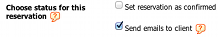 send emails to client) can be switched off if you don’t want any emails to be sent to the customer at this time. If this option is selected, a single email will be sent (which one is sent depends on the first checkbox). This option has no effect on the emails sent to the administrators. This will happen based on your notification settings (by default an email will be sent to the administrator only for non-confirmed reservations).
