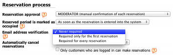 never required or make the email field in the reservation form not required (Planyo understands that if the email field is not obligatory no verification should be required even if the email is entered).