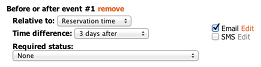 These messages can also have a condition associated with them and be sent only when a reservation has a specific status (e.g. it’s confirmed). You can use these messages as reminders or invitations to make the payment (e.g. the second part of the payment if you only asked for a partial payment when the reservation was made). You can also use them to have an email sent to the customer after the rental is finished to thank them for coming and offering them a discounted voucher code for the next visit.